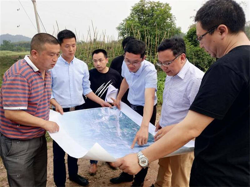 2019年4月26日,雅安交建集團黨委書記、董事長漆家華,副總經(jīng)理、無水港公司執(zhí)行董事杜峻、無水港公司總經(jīng)理夏炅旻在鳳鳴鄉(xiāng)相關負責人陪同下,對無水港一期建設地塊有關情況進行了現(xiàn)場調研。