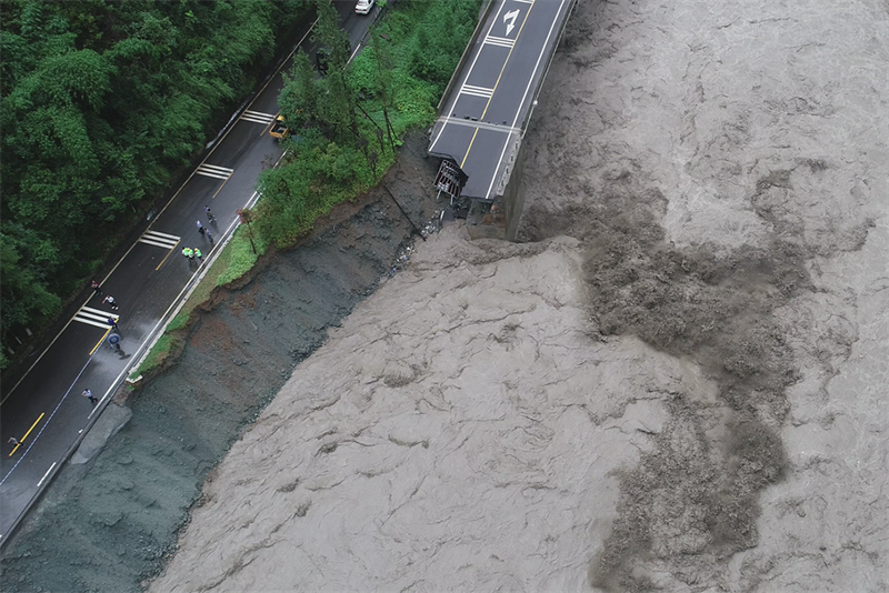 8月22日,受持續(xù)特大暴雨影響,寶興縣境內(nèi)G351、S308S432三條國(guó)省干線多處受災(zāi)損毀。按照市交通運(yùn)輸局統(tǒng)一安排部署,交建集團(tuán)迅速啟動(dòng)受損路段的勘探調(diào)查工作。
