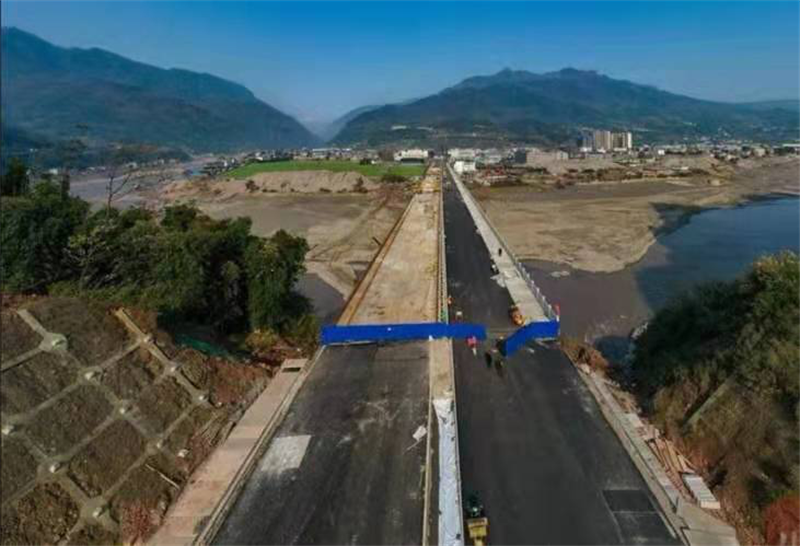 12月24日,雅安多營(yíng)青衣江大橋已貫通的半幅橋面和兩端引道已完成路面鋪設(shè)和護(hù)欄安裝,另半幅橋面完成澆筑,開(kāi)始橋面鋪設(shè),大橋即將