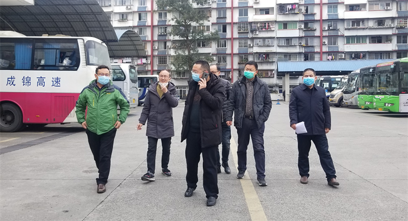 1月30日,集團(tuán)公司黨委書記、董事長、疫情防控工作領(lǐng)導(dǎo)小組組長漆家華等6名同志到西門車站督導(dǎo)蜀通公司客運(yùn)班車新型冠狀病毒肺炎疫情防控工作。