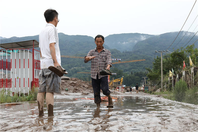8月18日下午,在草壩青衣江大橋建設現(xiàn)場,項目部外的院壩、工地附近的道路,均覆蓋著厚厚的淤泥!白蛲砭o急撤離,我的車停在河邊,也沒來得及開走,現(xiàn)在都沒找到。”一臉疲憊的李勁松告訴記者,雖然洪水漲勢迅猛,但他們撤離之前,提前通知了電力部門斷電,否則若有人再次靠近洪水,將面臨觸電的風險。