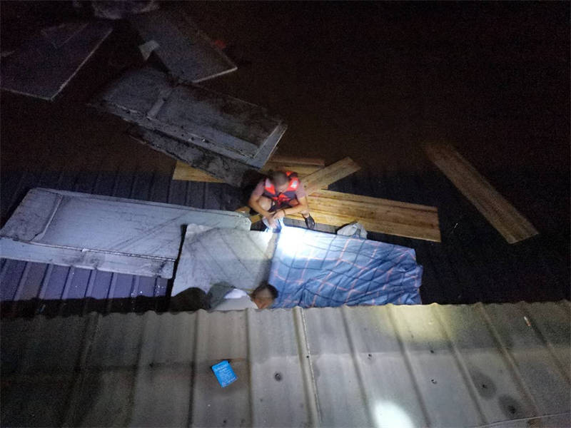 “感謝3名值班人員及時打電話通知我,否則后果不堪設想。”簡敬奎說,回想起昨晚的情形,心里還是有些后怕。當時,他接到值班人員電話后,發(fā)現(xiàn)門衛(wèi)室外的洪水已經(jīng)逼近脖子,無法順利撤離,洪水漲勢又快,不一會兒,他只得爬上門衛(wèi)室頂端才能避免被水淹沒。后來,洪水沖來了一棵樹,簡敬奎借助這棵樹慢慢轉(zhuǎn)移到了附近一棵較高大的樹上繼續(xù)躲避,直至黃志和方華軍前來營救。