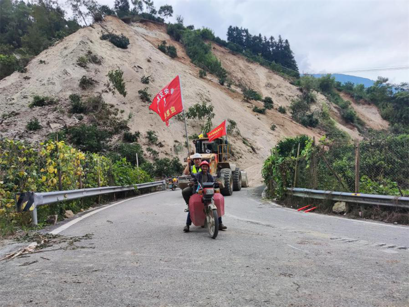 9月5日,項(xiàng)目經(jīng)理吳學(xué)林同志帶領(lǐng)突擊隊(duì)率先抵達(dá)G108線菩薩崗。一次次余震攔不住他們的腳步,一聲聲哀嚎更堅(jiān)定了他們逆行的決心。在通訊受阻的情況下,緊急調(diào)配2臺(tái)挖掘機(jī)、1臺(tái)推土機(jī)自G108線又轉(zhuǎn)戰(zhàn)新民鄉(xiāng),在受災(zāi)嚴(yán)重的X067縣道開展道路搶通以及救援工作。在搶險(xiǎn)一線,飛石及塌方的風(fēng)險(xiǎn)時(shí)刻危及著救災(zāi)人員的自身安全!耙欢ㄒ嘤^察!首先要保證自己的安全才能更好地完成搶險(xiǎn)工作!”項(xiàng)目經(jīng)理吳學(xué)林同志、項(xiàng)目工程部副部長(zhǎng)李健同志在轟鳴的搶險(xiǎn)現(xiàn)場(chǎng)喊破嗓子指揮著各類機(jī)具搶險(xiǎn)作業(yè)。待通訊恢復(fù)后,吳學(xué)林同志一邊組織現(xiàn)場(chǎng)搶險(xiǎn),一邊實(shí)時(shí)逐級(jí)上報(bào)受災(zāi)和搶險(xiǎn)情況,與第一時(shí)間趕來的集團(tuán)公司和路橋公司現(xiàn)場(chǎng)指揮組,會(huì)商道路受阻情況,研究布置搶險(xiǎn)保通工作。緊接著,石棉項(xiàng)目部搶險(xiǎn)人員來不及片刻休息,馬不停蹄地投入到一處處塌方、受阻道路搶通中。