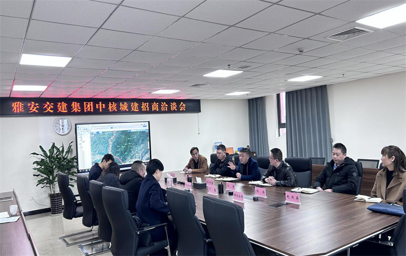 中核城建公司副總經(jīng)理兼市場(chǎng)開(kāi)發(fā)部經(jīng)理王強(qiáng)、總經(jīng)理助理?xiàng)罾,雅安交建集團(tuán)副總經(jīng)理丁春,以及雙方相關(guān)部門負(fù)責(zé)人參洽談。