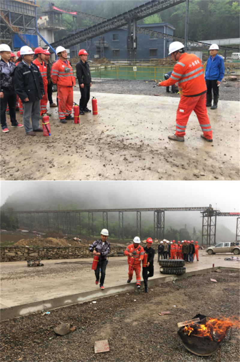 隨后,中鼎爆破公司總經(jīng)理陳永向大家講解了消防安全知識(shí)和火災(zāi)發(fā)生后的處理辦法及逃生、救護(hù)方式,并演示了滅火器材的使用和現(xiàn)場撲救技能。隨后丹石公司與中鼎爆破公司和路橋公司進(jìn)行了消防應(yīng)急演練。