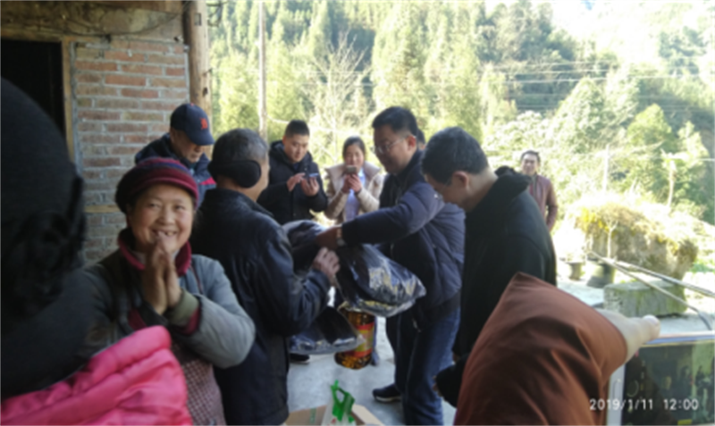 1月10日、11日,公司班子一行通過集中發(fā)放慰問品和走訪慰問貧困戶代表的方式,先后對名山區(qū)車嶺鎮(zhèn)石堰村、蘆山縣大川鎮(zhèn)快樂村開展慰問,為兩個村的159戶建檔立卡貧困戶、貧困老黨員們送上了大米、清油、面粉、掛面、愛心棉衣等慰問物品,將愛心傳達(dá)給每一位困難群眾的同時,每到一處,公司領(lǐng)導(dǎo)們都耐心細(xì)致的和貧困戶促膝交談,關(guān)心其家庭和收入情況,詳細(xì)了解其脫貧情況,并介紹國家扶貧政策、傳達(dá)黨委政府對每戶貧困戶的關(guān)心和掛念,引導(dǎo)貧困戶既要感恩黨和政府,又要學(xué)會自力更生,鼓勵他們一定要樹立樂觀健康心態(tài),克服困難,用勤勞的雙手早日致富奔康。