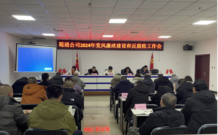 為扎實推進交建集團蜀通公司黨風(fēng)廉政建設(shè),強化廣大黨員干部廉潔自律意識,增強拒腐防變能力,2月28日,交建集團蜀通公司黨總支組織召開2024年黨風(fēng)廉政設(shè)和反腐敗工作會。公司領(lǐng)導(dǎo)、中層干部參加了會議。