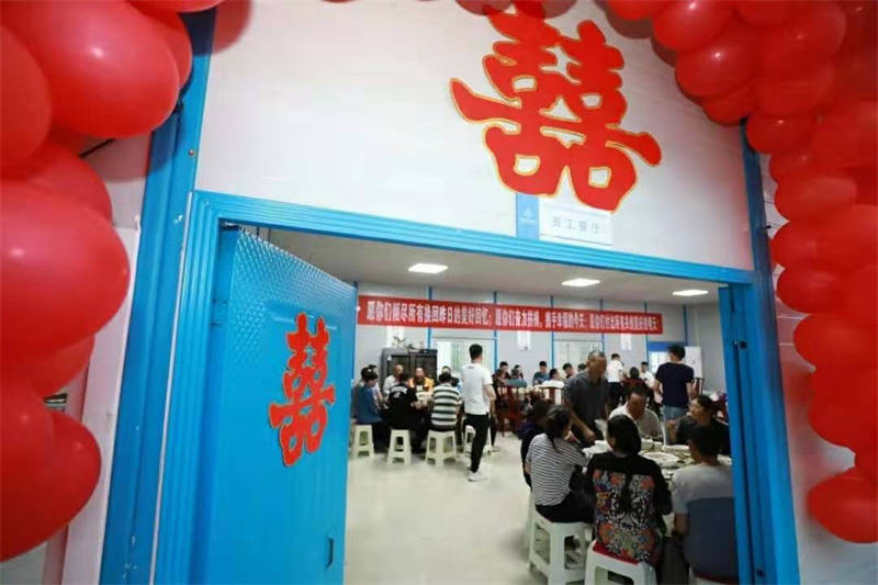 張萬清在致辭中表示,4對新人5月20日領(lǐng)證,5月21日舉行婚禮。這不僅展現(xiàn)了現(xiàn)在年輕夫妻一起吃苦、共同奮斗的優(yōu)秀品格和追求幸福的急迫心情,也展現(xiàn)出我們項目部的高效率。雖然今天的婚禮殿堂很簡陋,沒有婚紗,也沒有禮服,但是有我們所有工友的美好祝福。最后祝愿4對新人百年好合、永結(jié)同心,在交通集團這個大家庭里,互相幫助、互相支持、共創(chuàng)輝煌的事業(yè)。