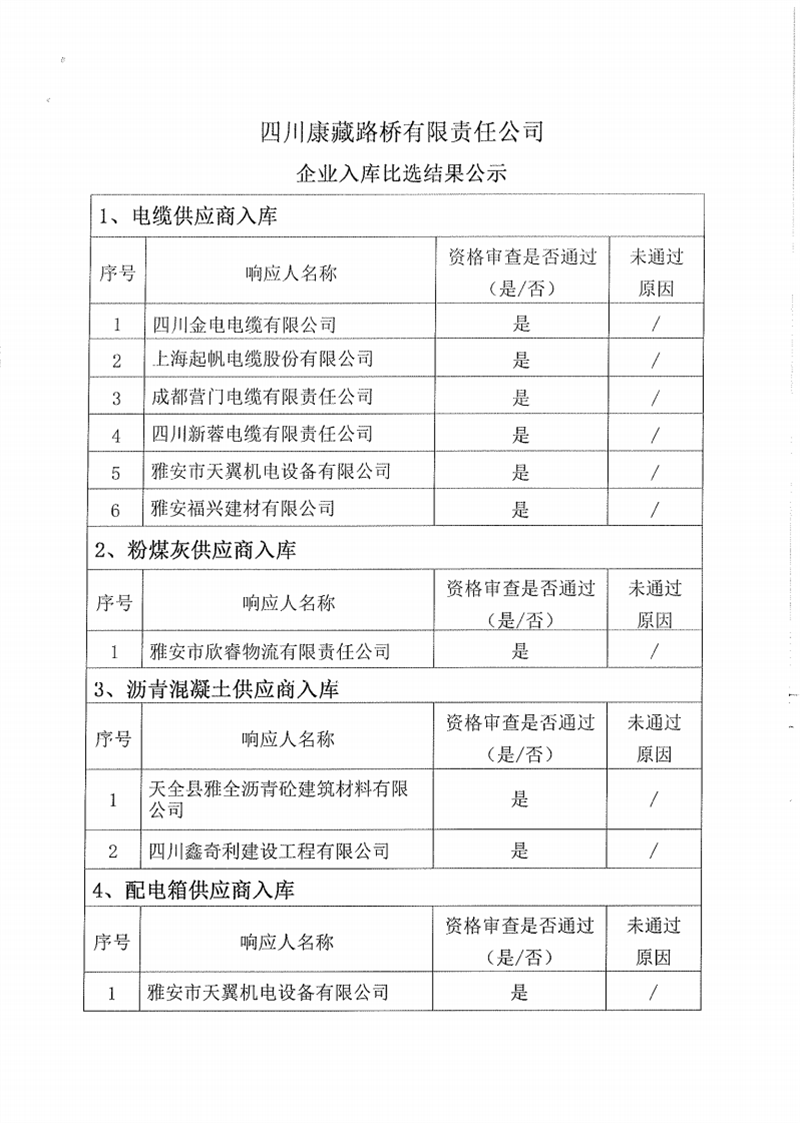 四川康藏路橋有限責(zé)任公司企業(yè)入庫(kù)比選結(jié)果公示