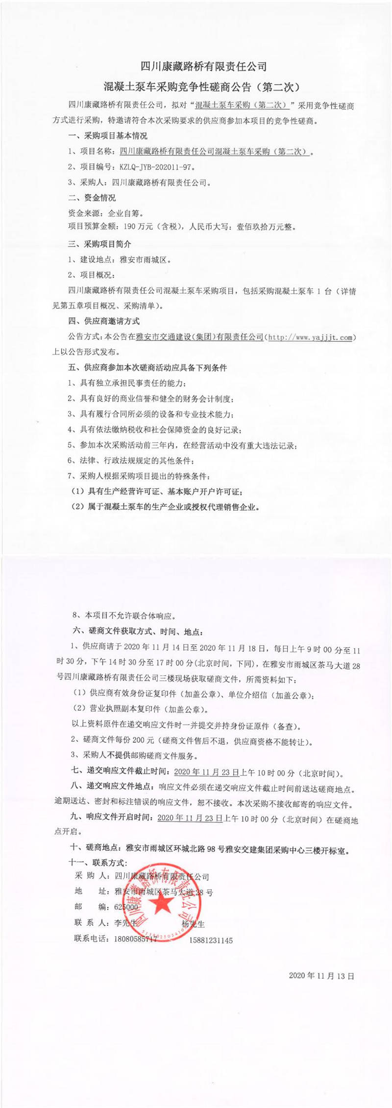四川康藏路橋有限責(zé)任公司混凝土泵車采購(gòu)競(jìng)爭(zhēng)性磋商公告(第二次)