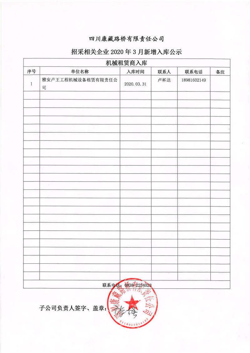 四川康藏路橋有限責(zé)任公司招采相關(guān)企業(yè)2020年3月新增入庫(kù)公示