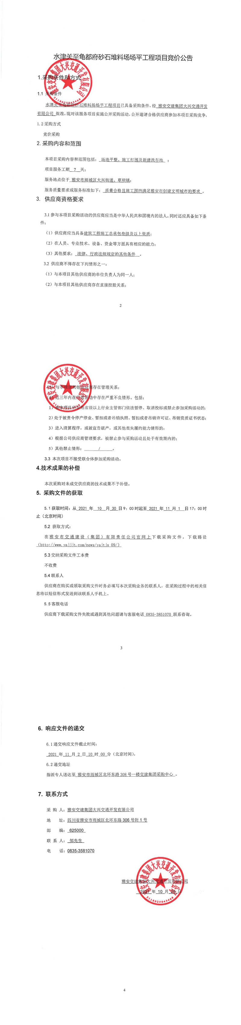 雅安交建集團(tuán)大興交通開發(fā)有限公司水津關(guān)至龜都府砂石堆料場場平工程項(xiàng)目競價(jià)公告