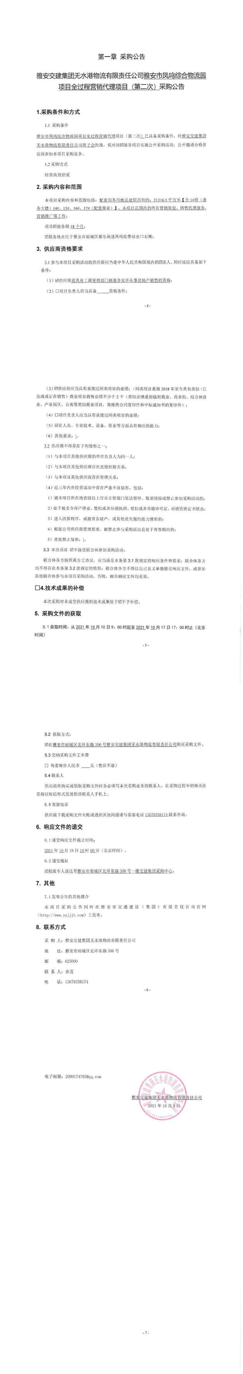 雅安交建集團(tuán)無水港物流有限責(zé)任公司雅安市鳳鳴綜合物流園項(xiàng)目全過程營(yíng)銷代理項(xiàng)目(第二次)采購(gòu)公告