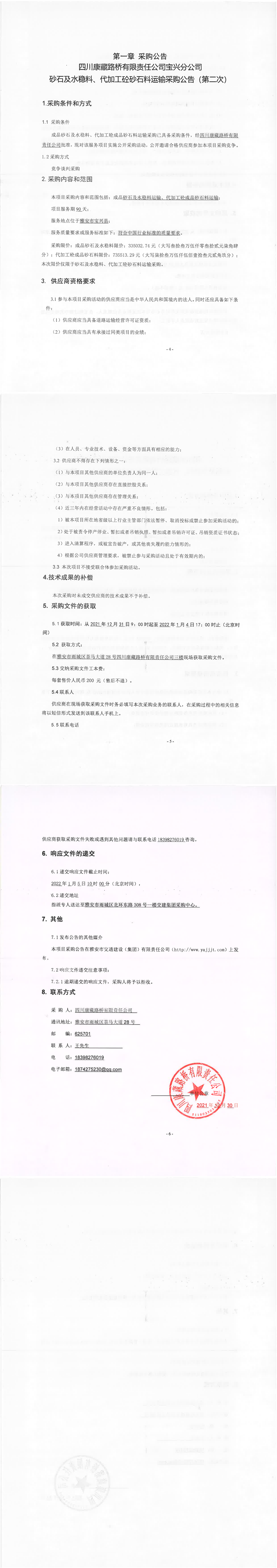 四川康藏路橋有限責(zé)任公司寶興分公司砂石及水穩(wěn)料、代加工砼砂石料運(yùn)輸采購(gòu)公告(第二次)
