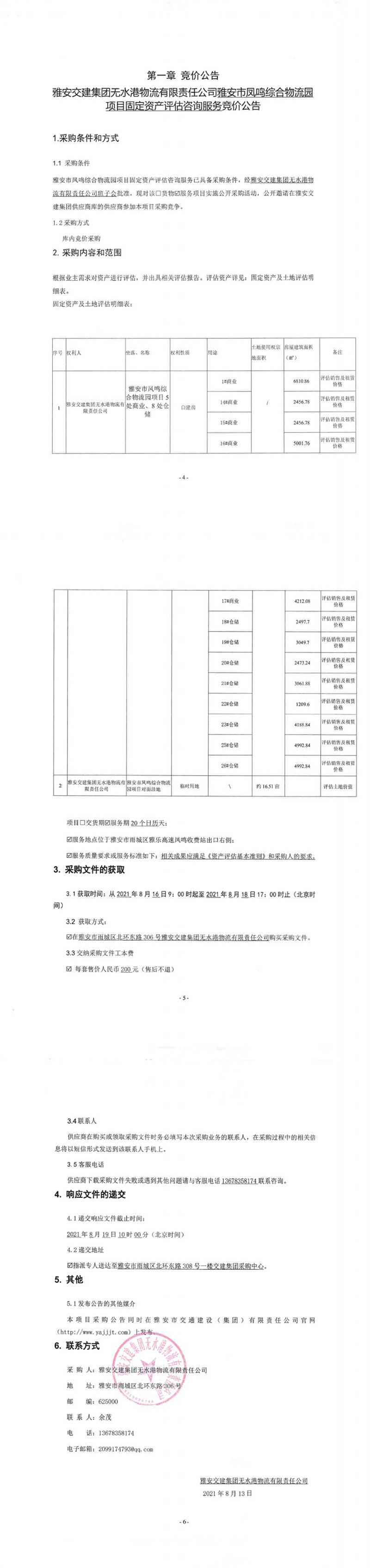 雅安交建集團(tuán)無(wú)水港物流有限責(zé)任公司雅安市鳳鳴綜合物流園項(xiàng)目固定資產(chǎn)評(píng)估咨詢(xún)服務(wù)競(jìng)價(jià)公告