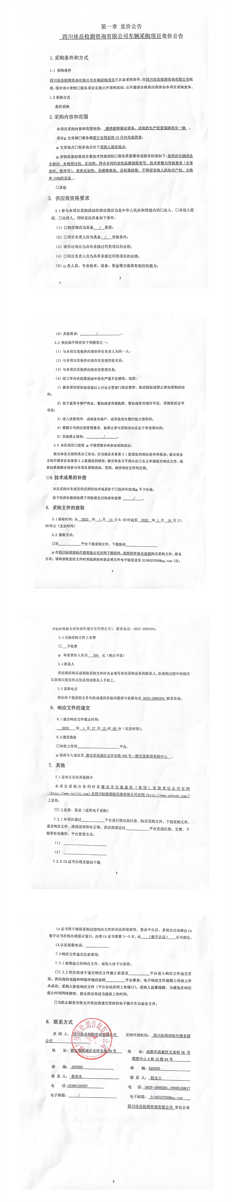 四川佳岳檢測(cè)咨詢(xún)有限公司車(chē)輛采購(gòu)項(xiàng)目競(jìng)價(jià)公告