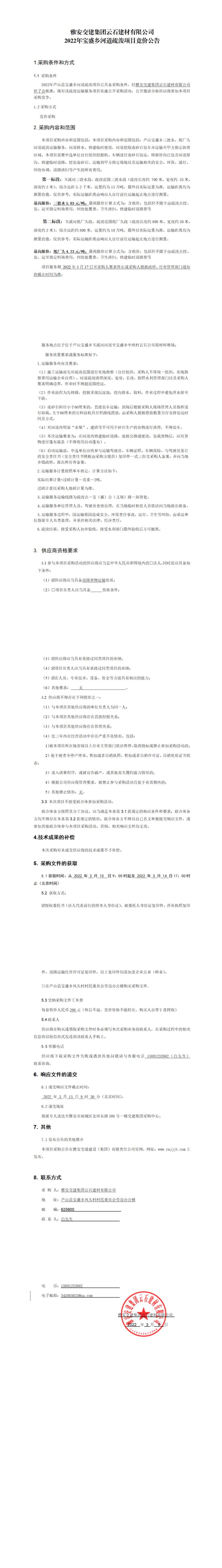 雅安交建集團(tuán)云石建材有限公司2022年寶盛鄉(xiāng)河道疏浚項目競價公告