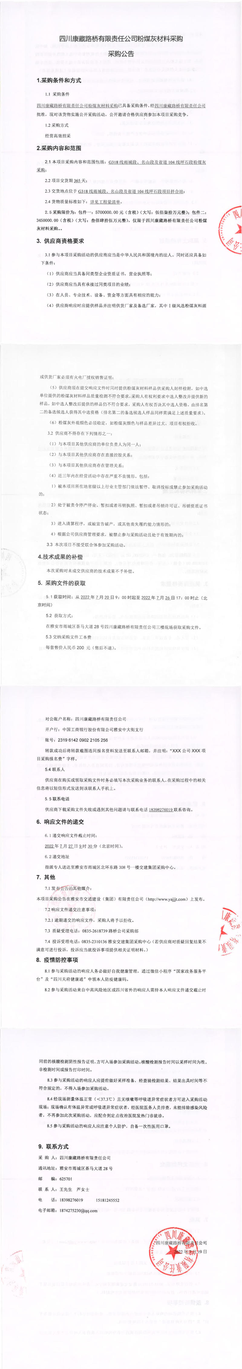 四川康藏路橋有限責(zé)任公司粉煤灰材料采購(gòu)采購(gòu)公告