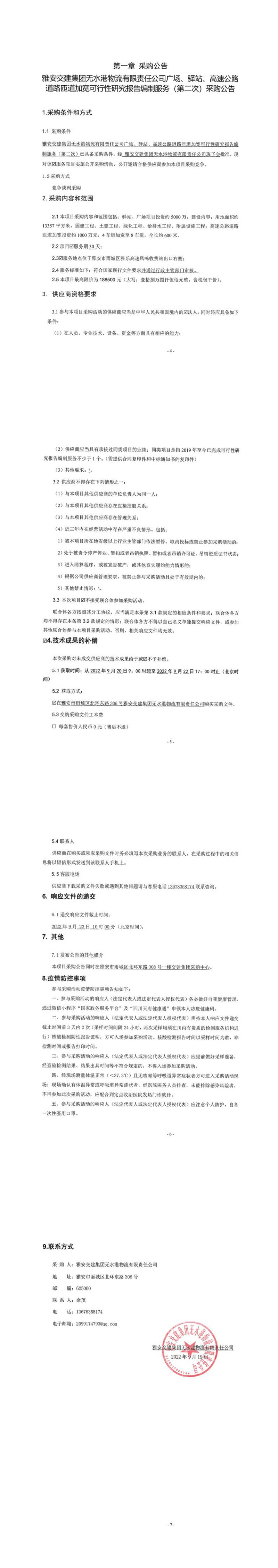 雅安交建集團無水港物流有限責任公司廣場、驛站、高速公路道路匝道加寬可行性研究報告編制服務(第二次)采購公告