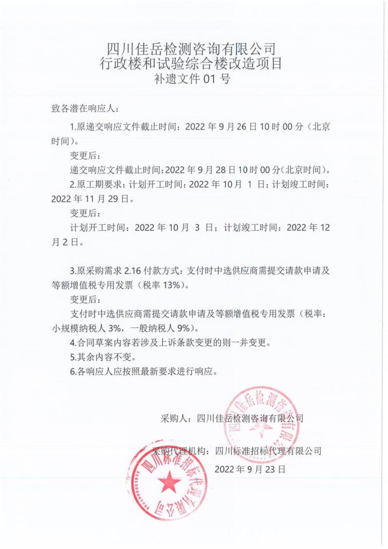 四川佳岳檢測咨詢有限公司行政樓和試驗(yàn)綜合樓改造項(xiàng)目補(bǔ)遺文件01號
