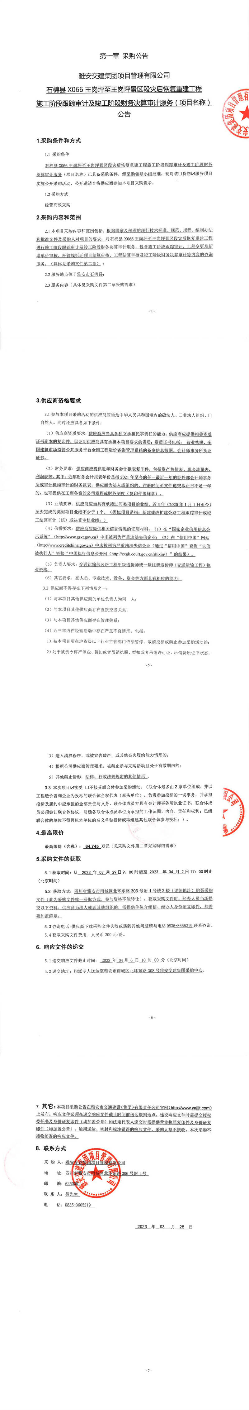 雅安交建集團項目管理有限公司石棉縣X066王崗坪至王崗坪景區(qū)段災(zāi)后恢復(fù)重建工程施工階段跟蹤審計及竣工階段財務(wù)決算審計服務(wù)(項目名稱)公告