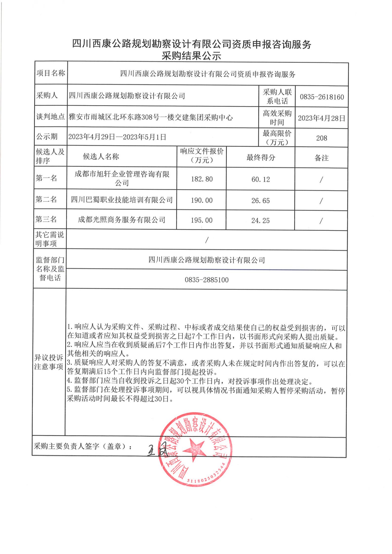 四川西康公路規(guī)劃勘察設(shè)計(jì)有限公司資質(zhì)申報(bào)咨詢服務(wù)采購結(jié)果公示