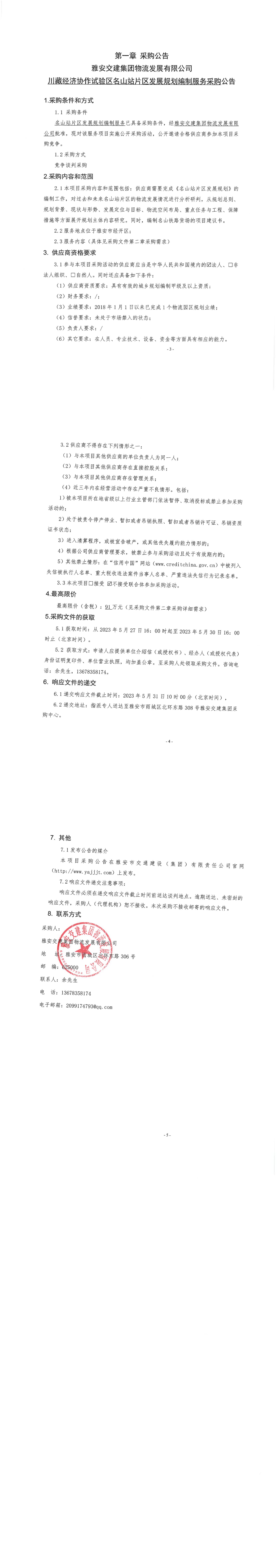 雅安交建集團(tuán)物流發(fā)展有限公司川藏經(jīng)濟(jì)協(xié)作試驗區(qū)名山站片區(qū)發(fā)展規(guī)劃編制服務(wù)采購公告