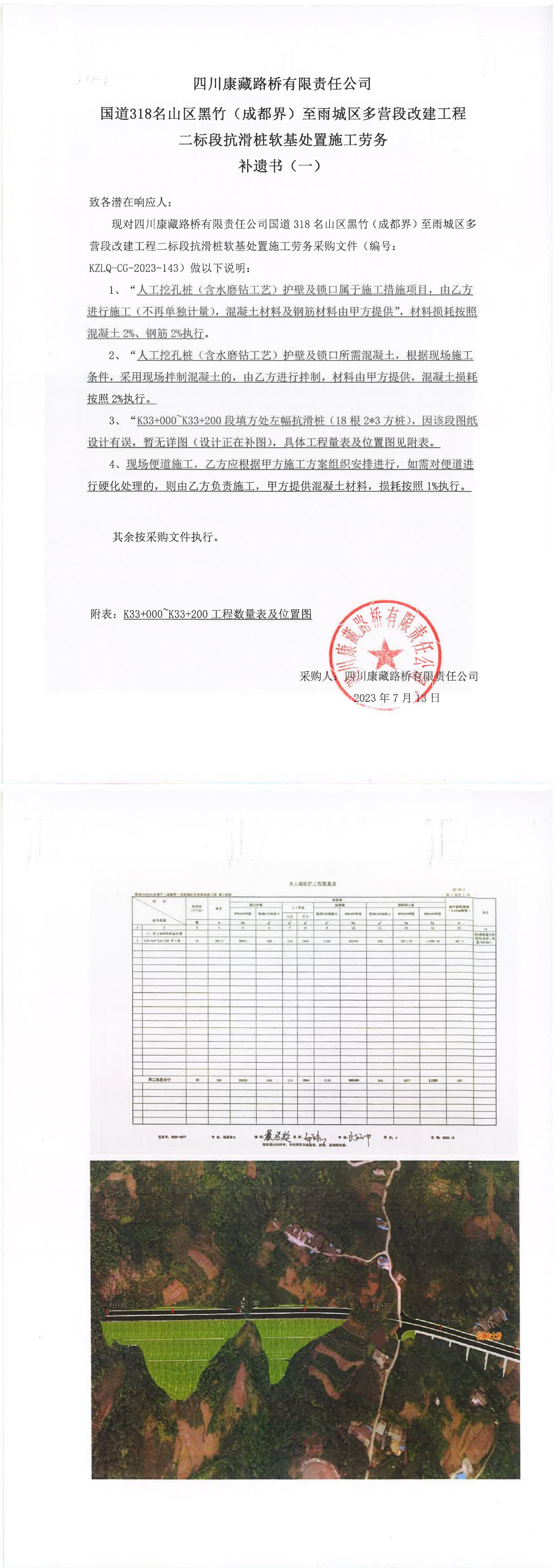 四川康藏路橋有限責(zé)任公司國(guó)道318名山區(qū)黑竹(成都界)至雨城區(qū)多營(yíng)段改建工程二標(biāo)段抗滑樁軟基處置施工勞務(wù)補(bǔ)遺書(一))