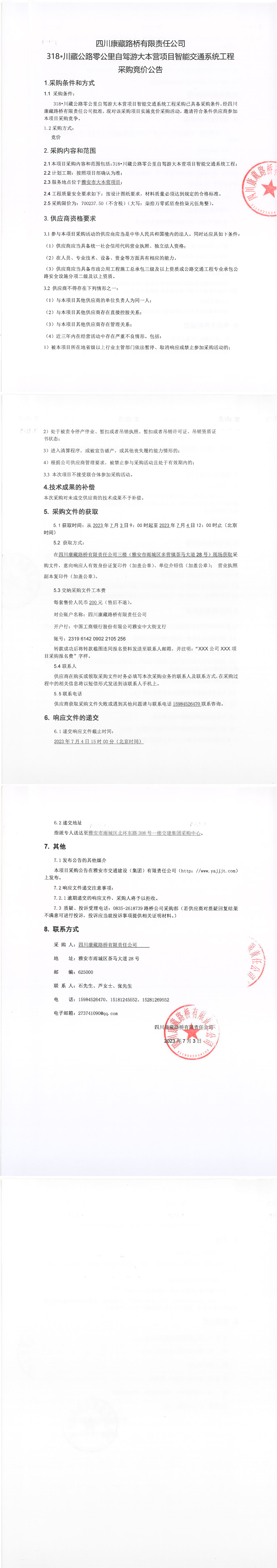 四川康藏路橋有限責(zé)任公司318·川藏公路零公里自駕游大本營(yíng)項(xiàng)目智能交通系統(tǒng)工程采購競(jìng)價(jià)公告