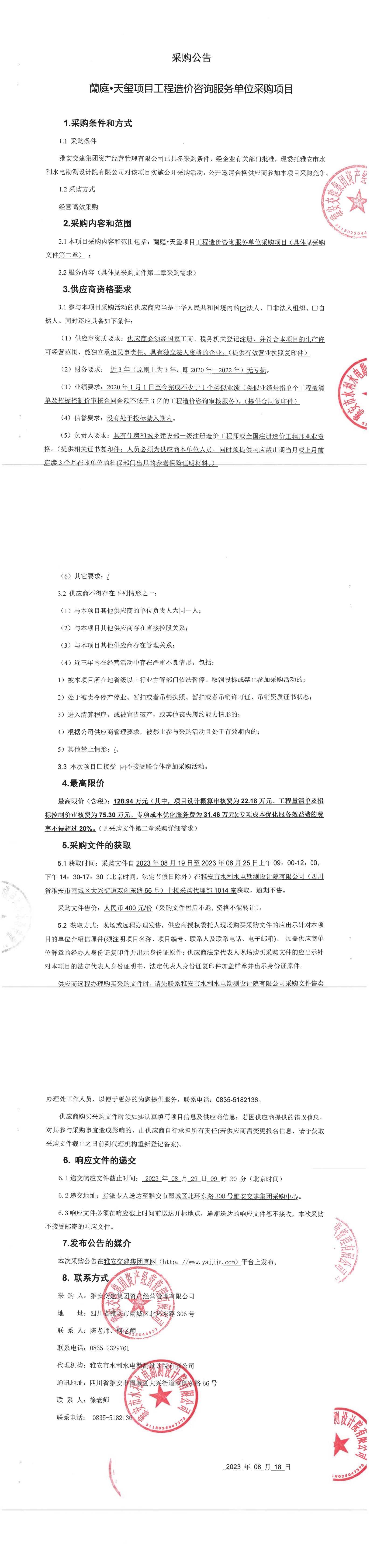 雅安交建集團(tuán)資產(chǎn)經(jīng)營(yíng)管理有限公司蘭庭·天璽項(xiàng)目工程造價(jià)咨詢服務(wù)單位采購(gòu)項(xiàng)目采購(gòu)公告
