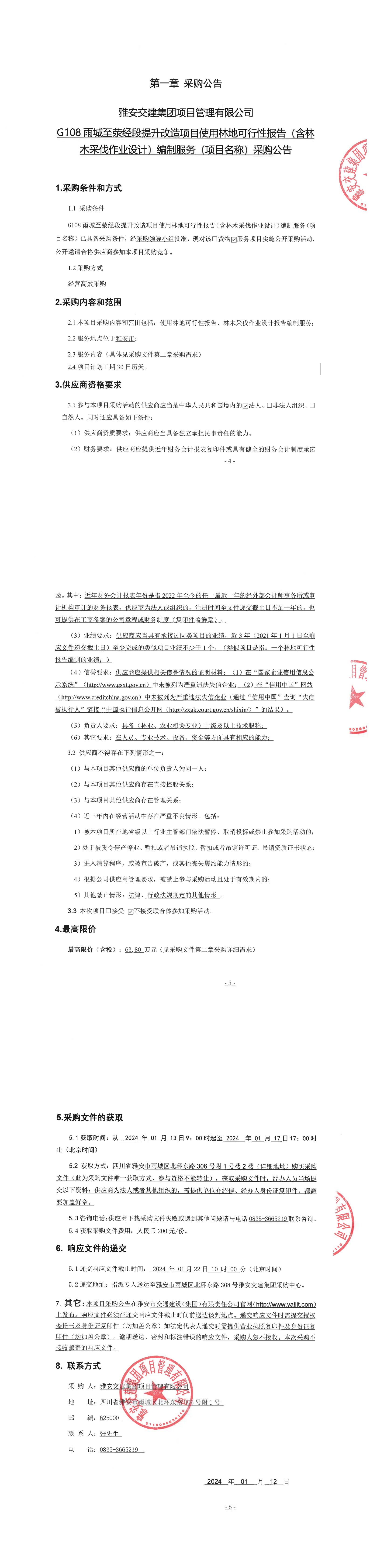 雅安交建集團(tuán)項(xiàng)目管理有限公司G108雨城至滎經(jīng)段提升改造項(xiàng)目使用林地可行性報(bào)告(含林木采伐作業(yè)設(shè)計(jì))編制服務(wù)(項(xiàng)目名稱(chēng))采購(gòu)公告