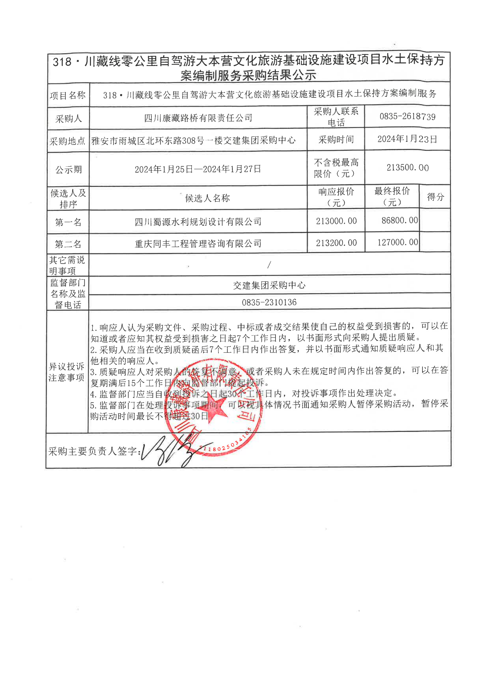 四川康藏路橋有限責(zé)任公司318·川藏線零公里自駕游大本營文化旅游基礎(chǔ)設(shè)施建設(shè)項(xiàng)目水土保持方案編制服務(wù)采購結(jié)果公示