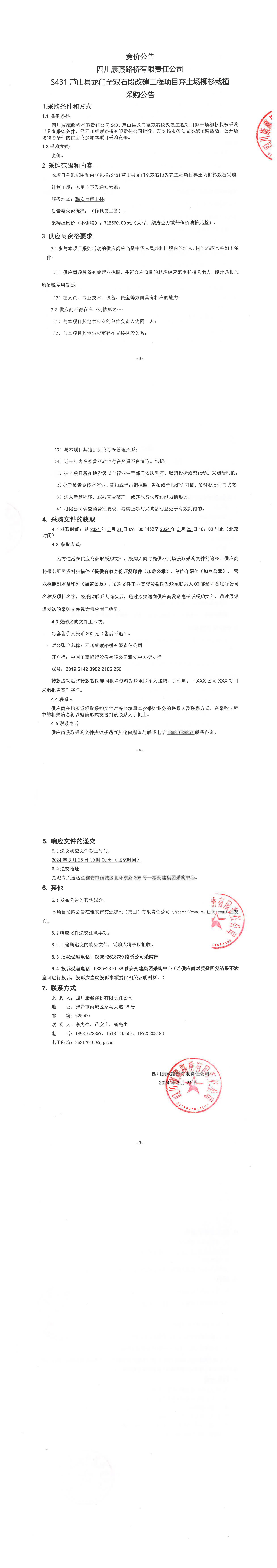 四川康藏路橋有限責任公司S431蘆山縣龍門至雙石段改建工程項目棄土場柳杉栽植采購公告