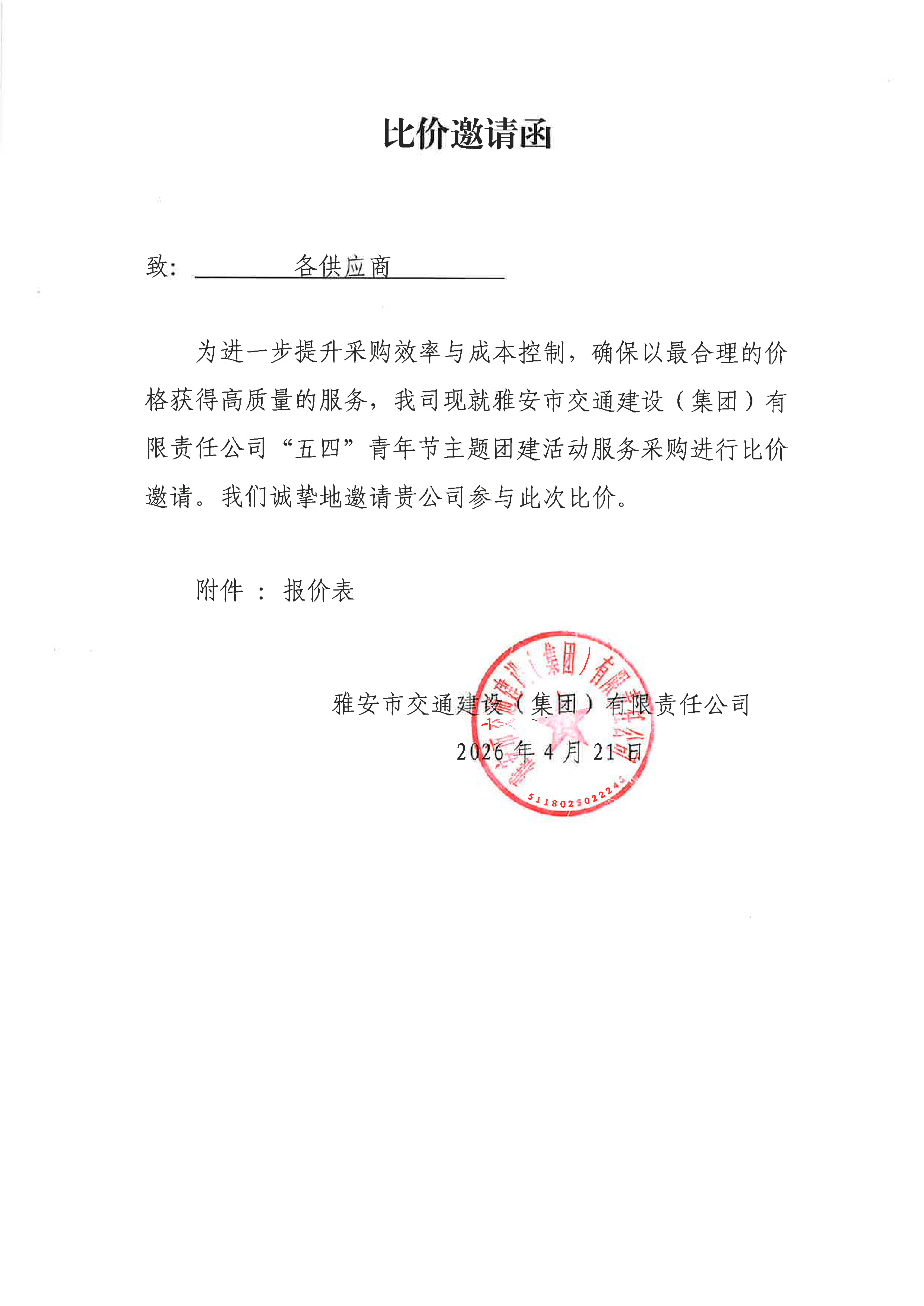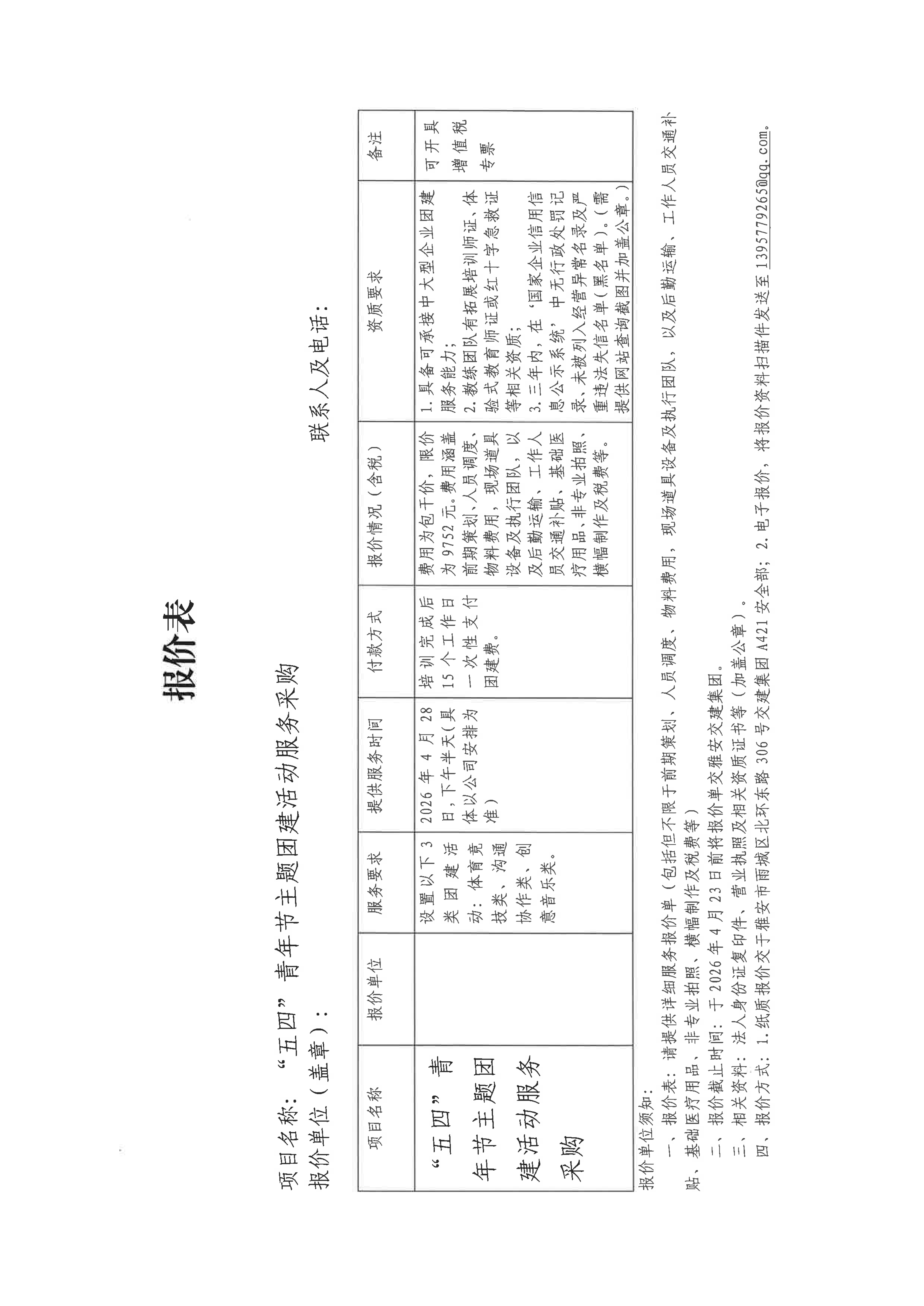 關(guān)于“五四”青年節(jié)主題團建活動服務(wù)采購的比價邀請函