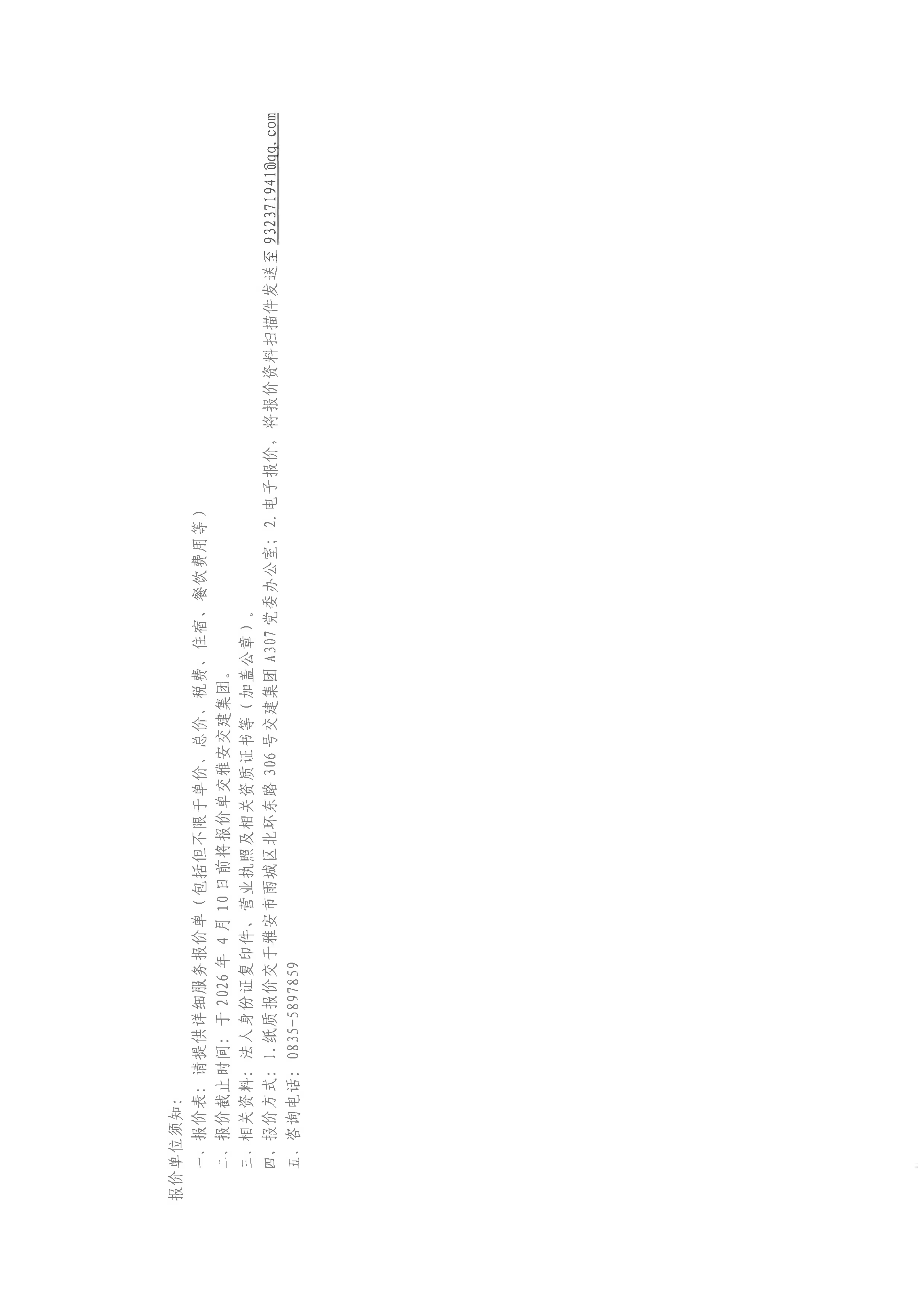 關(guān)于雅安市交通建設(shè)(集團(tuán))有限責(zé)任公司定制化信息專(zhuān)報(bào)服務(wù)采購(gòu)限價(jià)的詢(xún)價(jià)函