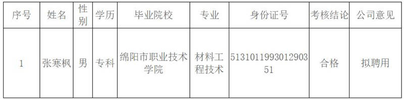 根據(jù)《雅安交建集團(tuán)康居建設(shè)工程質(zhì)量與室內(nèi)環(huán)境污染檢測有限公司綜合考核聘用工作方案》,按照“公開、平等、競爭、擇優(yōu)”的原則,經(jīng)考核合格,現(xiàn)將我公司擬聘用人員名單予以公示: