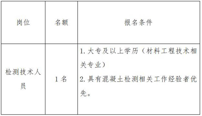 雅安交建集團康居建設(shè)工程質(zhì)量與室內(nèi)環(huán)境污染檢測有限公司是雅安市交通建設(shè)(集團)有限責任公司下屬子公司,主要從事民用建筑室內(nèi)環(huán)境污染檢測業(yè)務(wù)。現(xiàn)根據(jù)公司業(yè)務(wù)發(fā)展需要,擬向社會公開招聘1名技術(shù)檢測人員,現(xiàn)將有關(guān)事項公告如下: