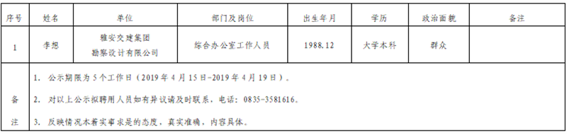雅安交建集團(tuán)子公司擬聘用人員公示(勘察設(shè)計(jì)公司)