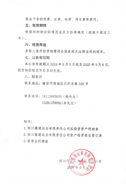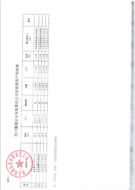 四川蜀通運(yùn)業(yè)有限責(zé)任公司關(guān)于調(diào)整蜀通公司4間門(mén)面價(jià)格二次掛網(wǎng)的公告附件