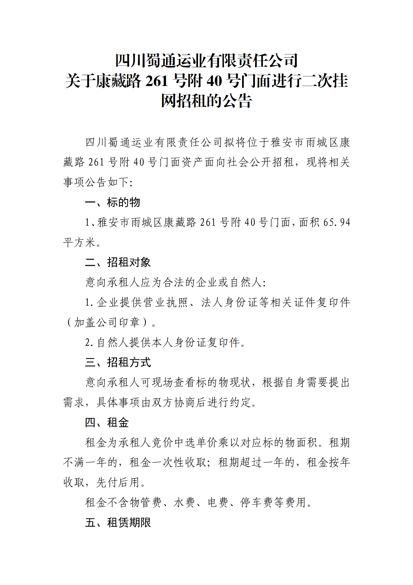 ËÄ´¨Êñͨß\(y¨´n)˜I(y¨¨)ÓÐÏÞØŸ(z¨¦)Èι«Ë¾ êP(gu¨¡n)ÓÚ¿µ²ØÂ·261Ì–(h¨¤o)¸½40Ì–(h¨¤o)éT(m¨¦n)ÃæßM(j¨¬n)Ðжþ´Î’ì¾W(w¨£ng)ÕÐ×âµÄ¹«¸æ