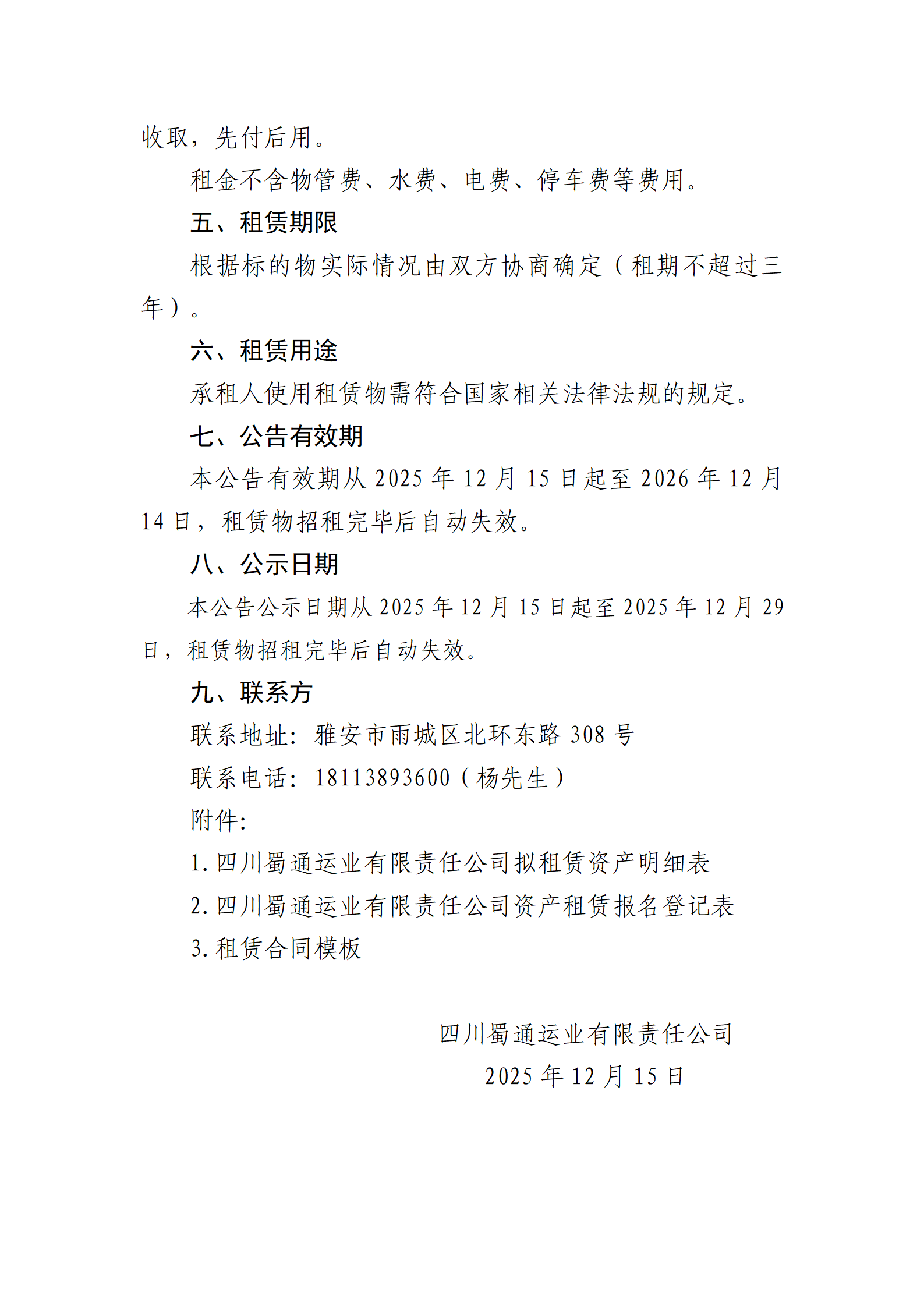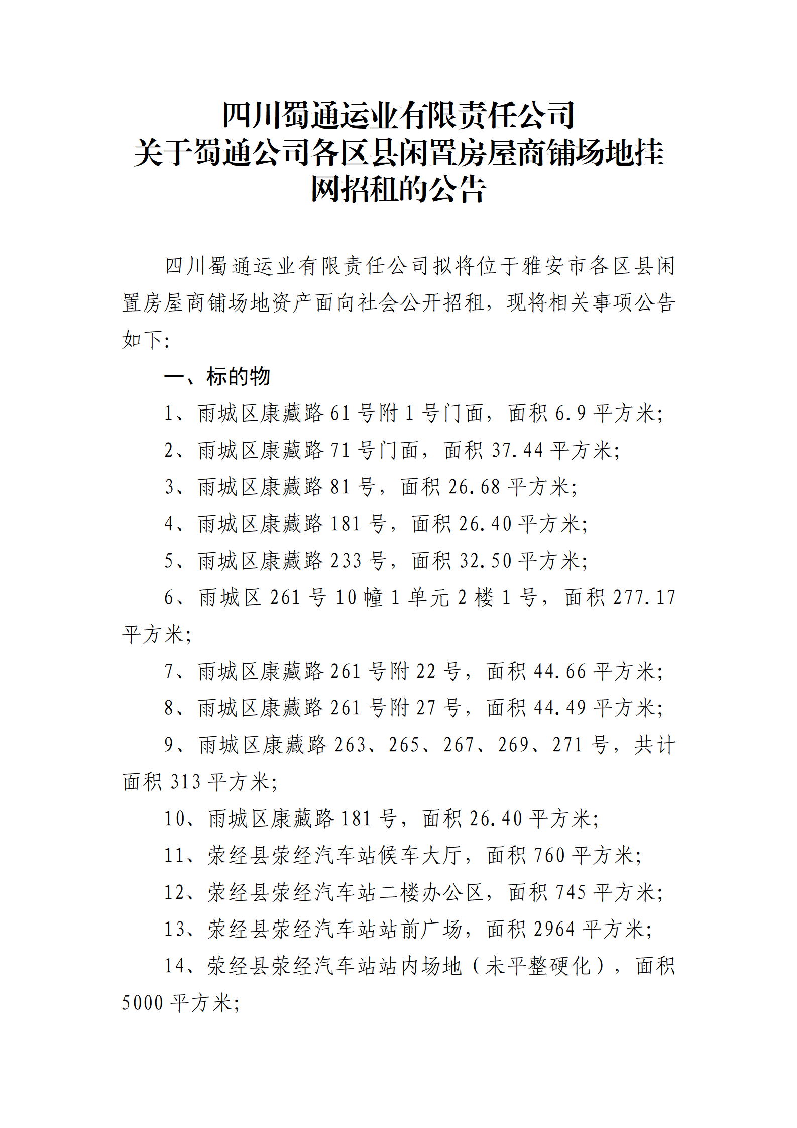 四川蜀通運業(yè)有限責任公司關于蜀通公司各區(qū)縣閑置房屋商鋪場地掛網(wǎng)招租的公告