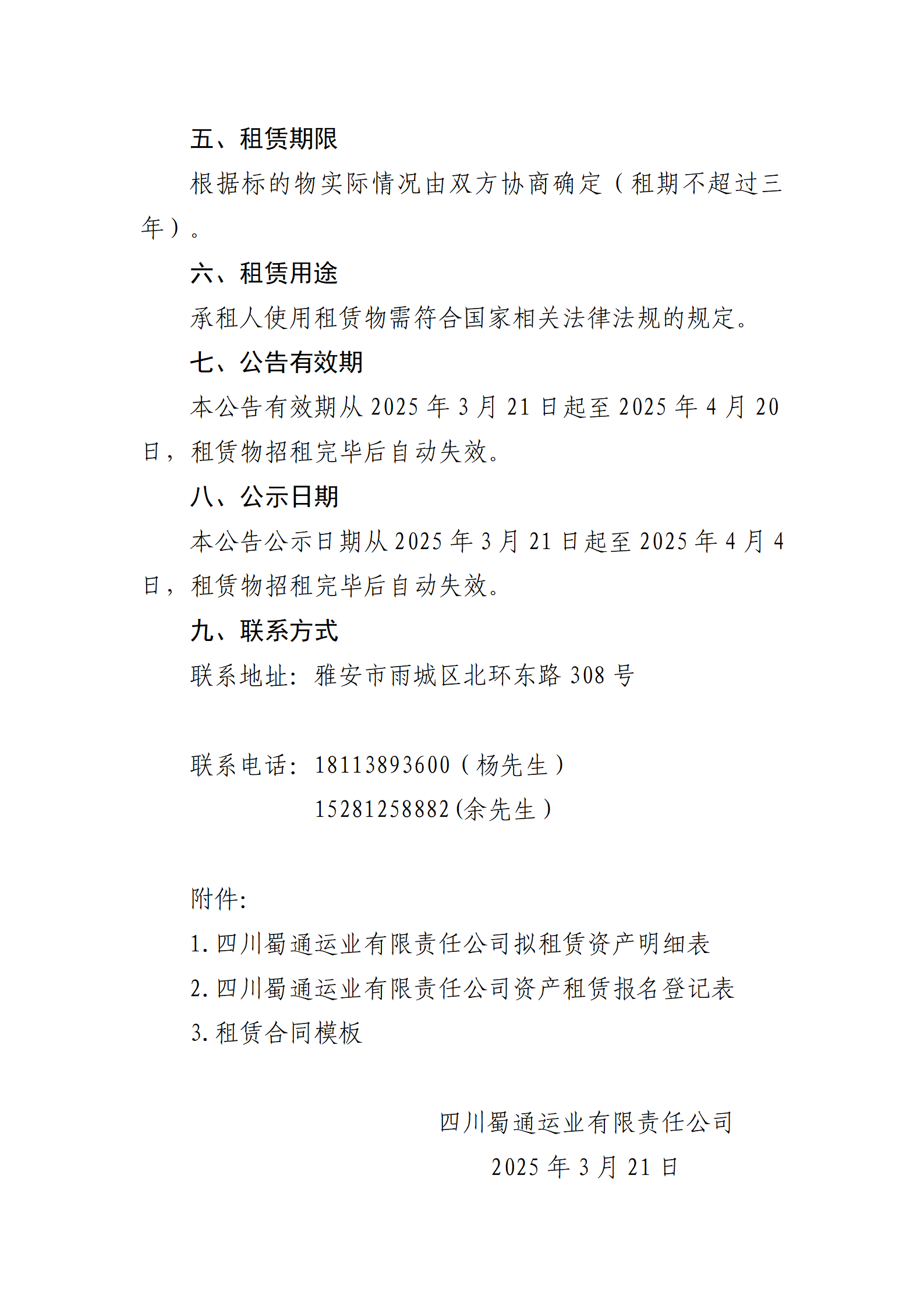 四川蜀通運(yùn)業(yè)有限責(zé)任公司 關(guān)于康藏路261號附22號、平安路30號兩處門面進(jìn)行掛網(wǎng)招租的公告