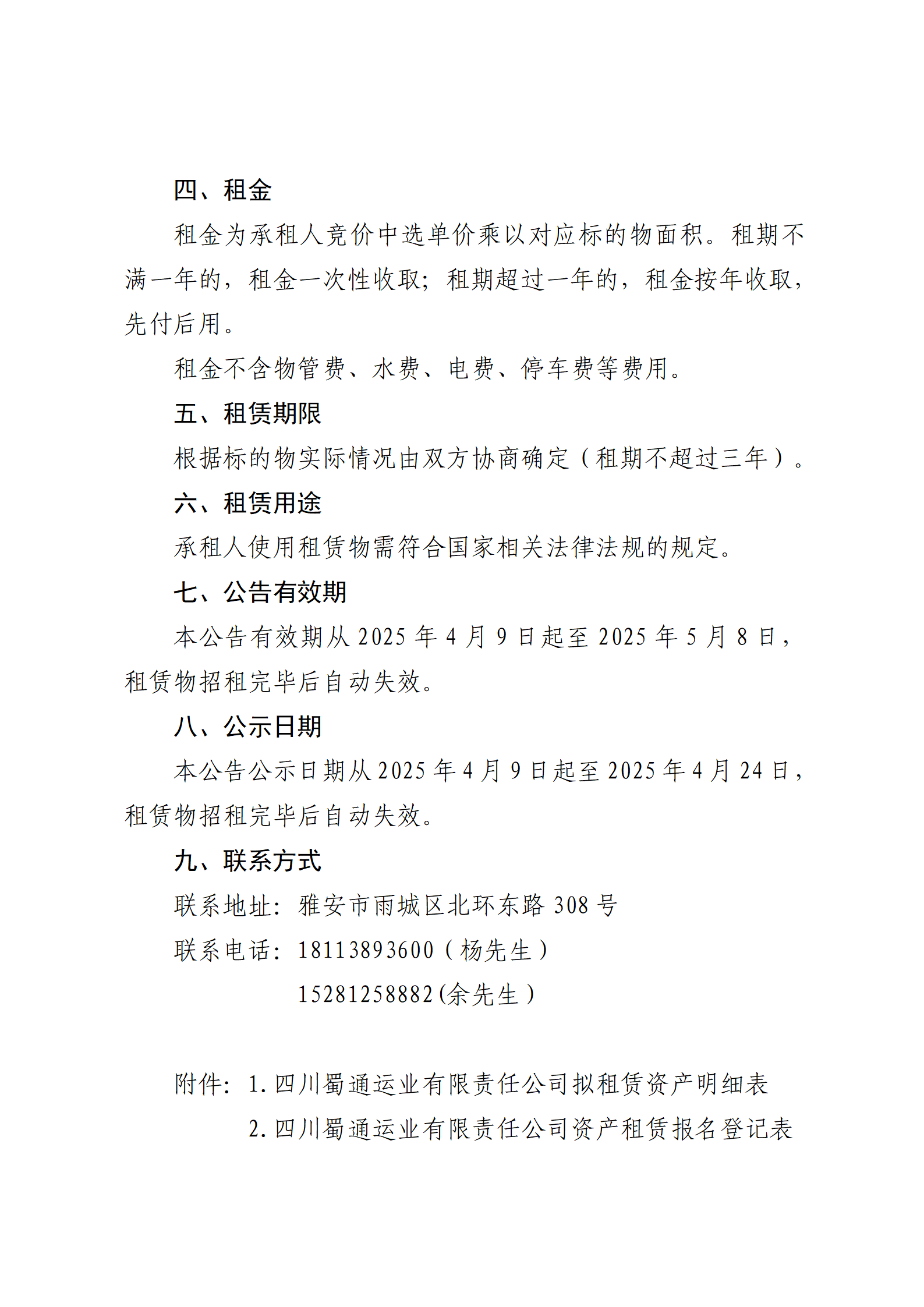 四川蜀通運業(yè)有限責任公司 關于康藏路261號附22號、平安路30號兩處門面進行掛網(wǎng)招租的公告