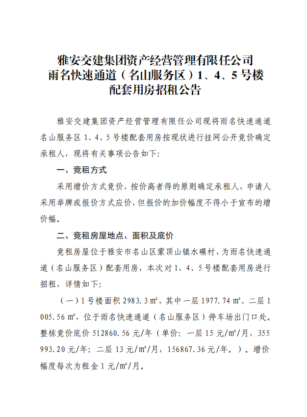 ÑŰ²½»½¨¼¯ˆF(tu¨¢n)ÙY®a(ch¨£n)½›(j¨©ng) I(y¨ªng)¹ÜÀíÓÐÏÞÈι«Ë¾ ÓêÃû¿ìËÙͨµÀ£¨Ãûɽ·þ„Õ(w¨´)…^(q¨±)£©1¡¢4¡¢5Ì–(h¨¤o)˜Ç ÅäÌ×Ó÷¿ÕÐ×⹫¸æ