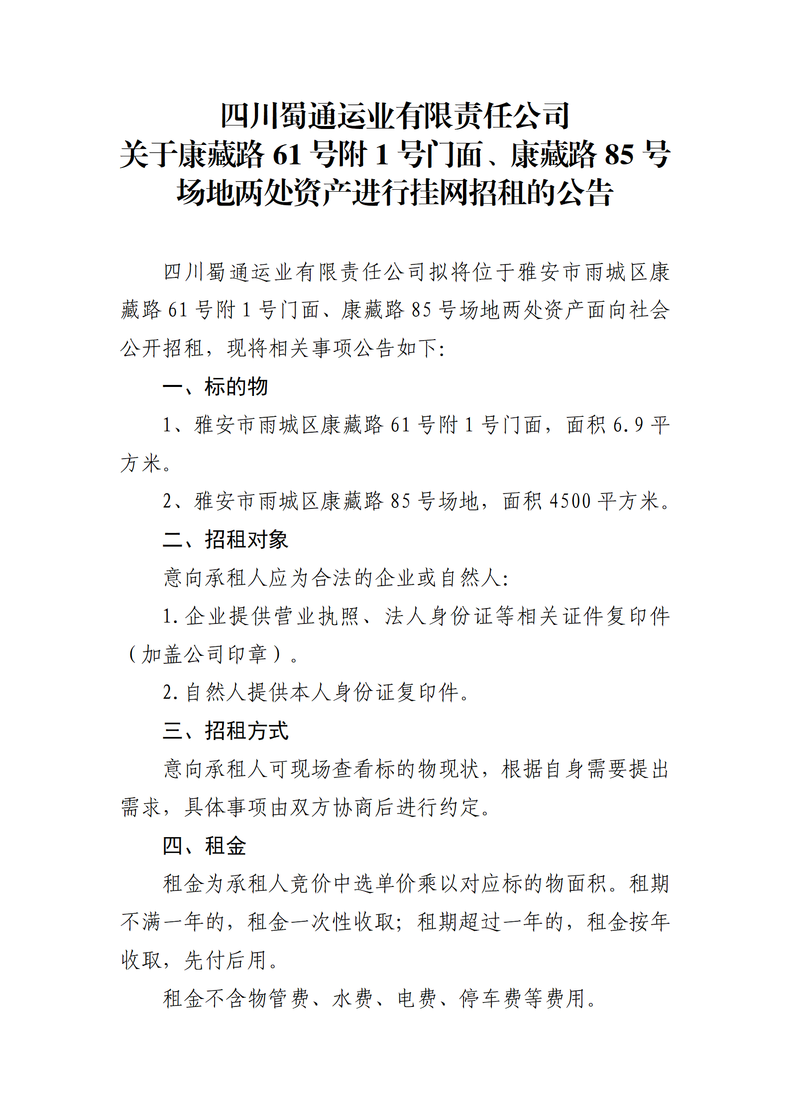 ËÄ´¨Êñͨß\˜I(y¨¨)ÓÐÏÞØŸÈι«Ë¾ êPÓÚ¿µ²ØÂ·61Ì–¸½1Ì–éTÃæ¡¢¿µ²ØÂ·85Ì–ˆöµØƒÉÌŽÙY®a(ch¨£n)ßMÐÐ’ì¾W(w¨£ng)ÕÐ×âµÄ¹«¸æ