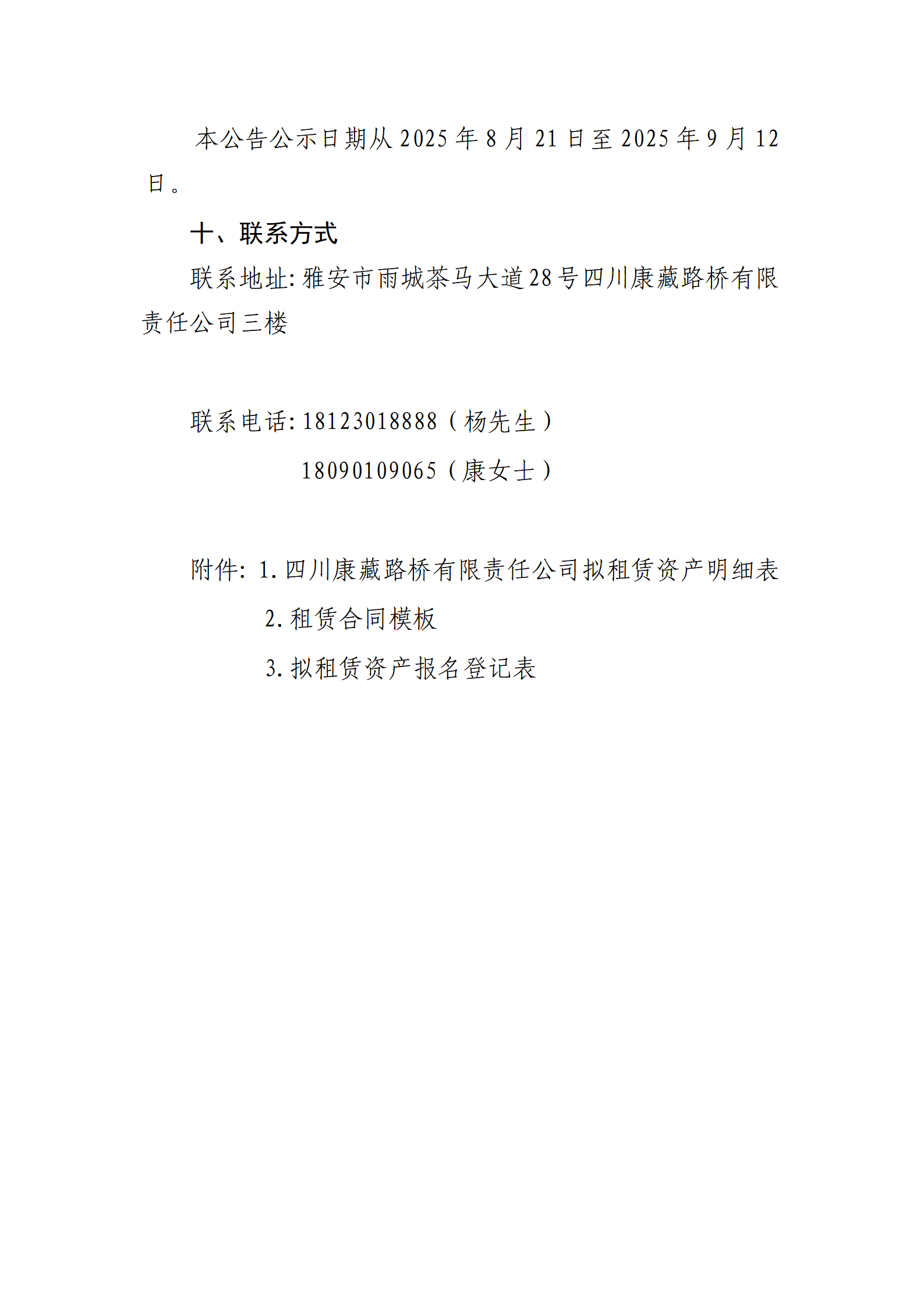 四川康藏路橋有限責(zé)任公司站前廣場(chǎng)資產(chǎn)招租公告