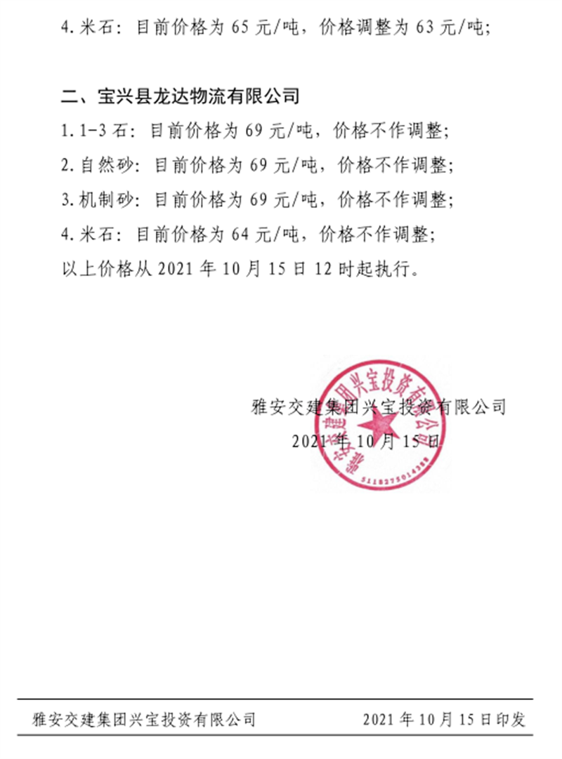 ÑŰ²½»½¨¼¯ˆF(tu¨¢n)ÅdŒš¹«Ë¾êP(gu¨¡n)ÓÚÕ{(di¨¤o)Õû³ÉÆ·ÁÏäNÊÛƒr(ji¨¤)¸ñµÄ֪ͨ£¨2021.10.15£©