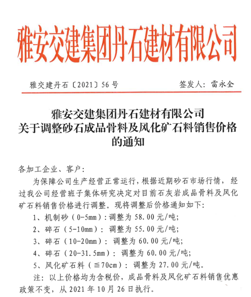 ÑŰ²½»½¨¼¯ˆFµ¤Ê¯¹«Ë¾êP(gu¨¡n)ÓÚÕ{(di¨¤o)Õû³ÉÆ·¹ÇÁϼ°ïL»¯µVʯÁÏäNÊÛƒr¸ñµÄ֪ͨ£¨2021.10.26£©