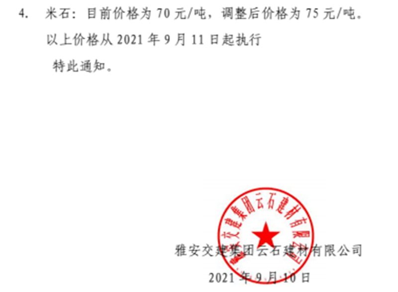 ÑŰ²½»½¨¼¯ˆFÔÆÊ¯¹«Ë¾êPÓÚÕ{(di¨¤o)Õû³ÉÆ·ÁÏäNÊÛƒr¸ñµÄ֪ͨ£¨2021.11.4£©