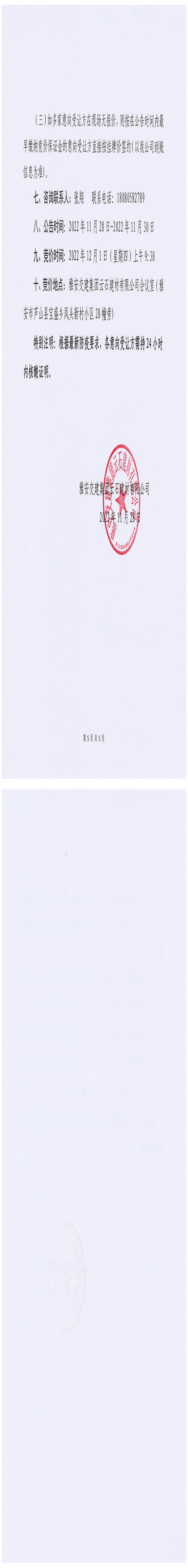 雅交建云石建材有限公司成品料競價銷售公告-2022-11-28